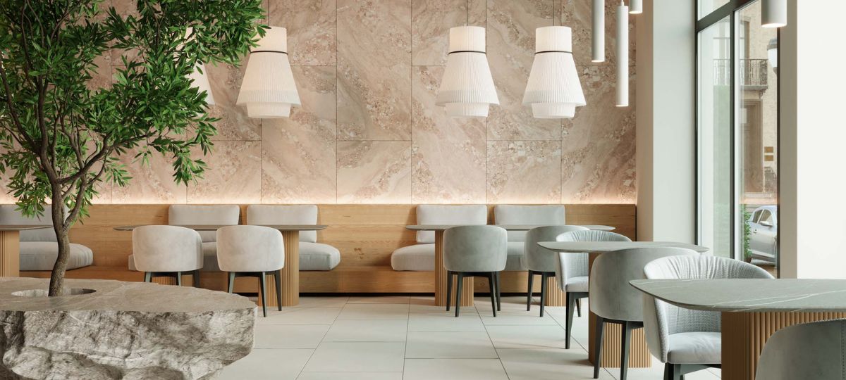 Поверхность керамогранита имеет антибактериальное покрытие, на 99% резистентное к наиболее часто встречающимся видам бактерий. А также натуральный рисунок, который получается с помощью современной системы нанесения дизайна специальными чернилами.